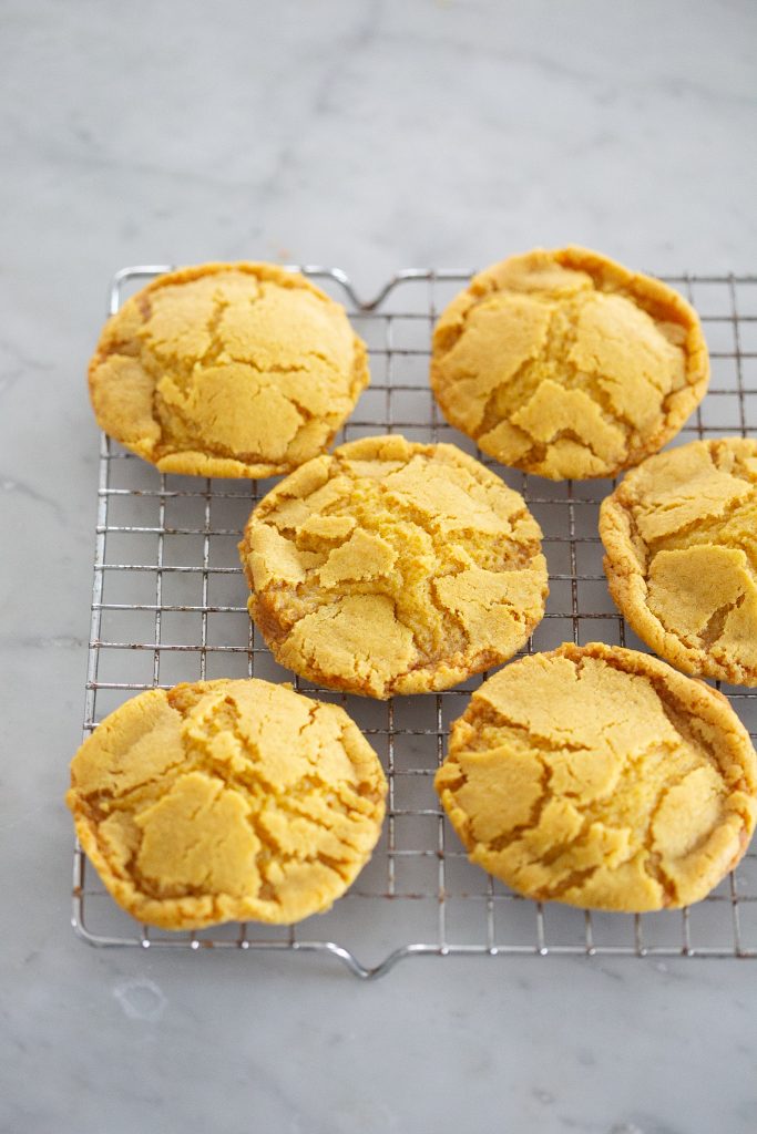 • ​Bake at 350F until the tops of the cookies are crackly and the edges just start to turn golden brown. Cool on the cookie sheet for a few minutes and then transfer to a wire rack.